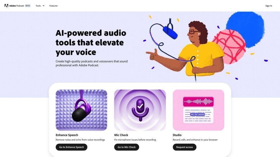 Adobe Podcast è il tool di registrazione audio basato sull’intelligenza artificiale in grado di migliorare la qualità e chiarezza del suono e del parlato, rimuovendo il rumore di fondo e rendendo più nitide le frequenze della tua voce. Con questo tool sembrerà che la tua voce sia stata registrato in uno studio professionale, provare per credere!
