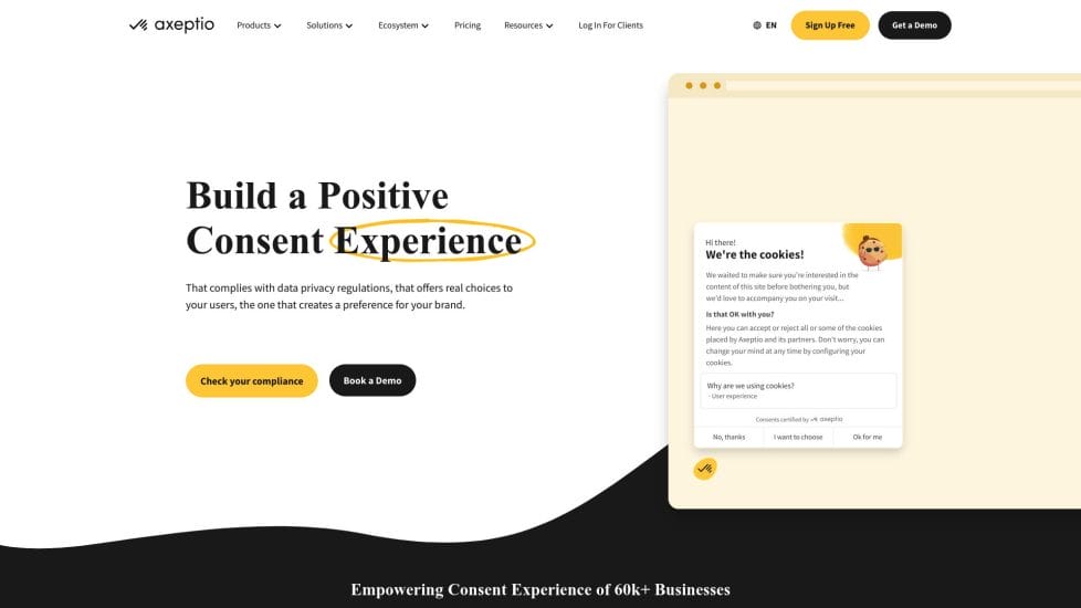 🛠 Cosa automatizza? Axeptio è il tool con cui personalizzare il testo e la grafica dei pop-up per l’accettazione dei cookie sul tuo sito web.