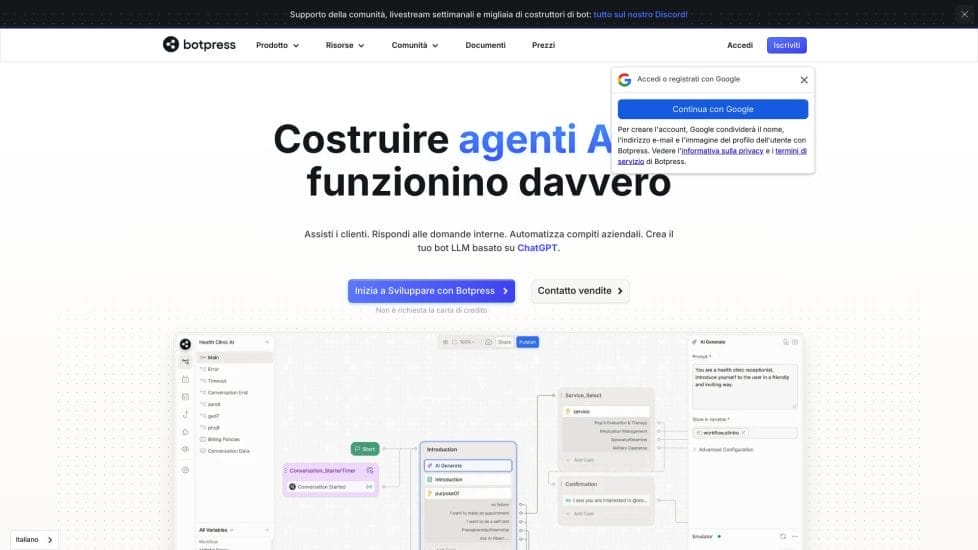Botpress è una piattaforma avanzata per lo sviluppo di chatbot basata su intelligenza artificiale generativa, come ChatGPT di OpenAI. Questo strumento automatizza la creazione di chatbot personalizzati, offrendo un ambiente di sviluppo intuitivo che facilita la costruzione di bot per vari scopi e settori. Con Botpress, è possibile addestrare i chatbot utilizzando basi di conoscenza fornite dall’utente, modelli personalizzabili e un set completo di integrazioni e competenze precostituite.