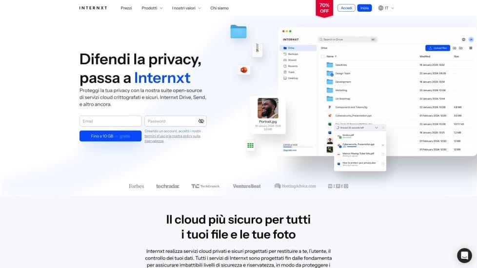 🛠 Cosa automatizza? Internxt è il tool con cui inviare e ricevere file online in tutta sicurezza, con crittografia end-to-end.